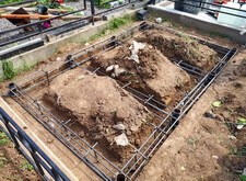Выкапываем между захоронениями траншеи, между получившимся холмами ввариваем надёжный каркас в четыре арматурных кольца.